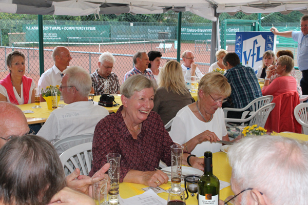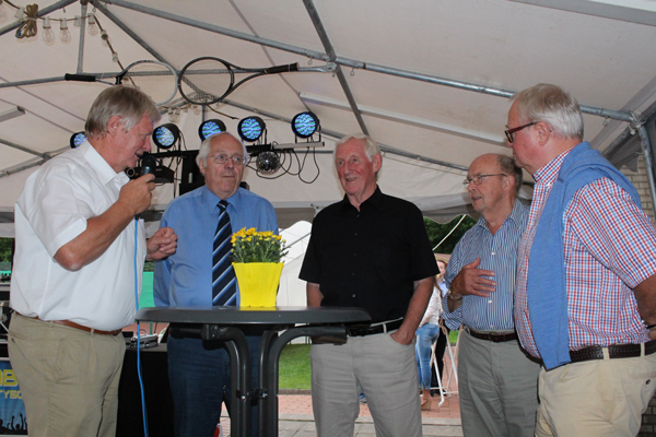 Im offiziellen Teil wurde zunächst in einer Talkrunde mit einigen „Männern der ersten Stunde“ Hans-Gerd Himmermann, Hans Middelberg, Hansi Bünger und Wolfgang Poggemann über die Anfänge der Tennisabteilung diskutiert. Welche Schwierigkeiten überwunden werden mussten und wie man es schaffte nach der Gründung der Abteilung am 3. Oktober 1975, ein Jahr später bereits über 200 Mitglieder zu haben. Wie schnell die Tennisplätze und das Clubhaus errichtet wurden, deren offizielle Einweihung bereits am 6. Mai 1978 erfolgen konnte. Eine Anekdote am Rande. Es war auch eine Flutlichtanlage geplant und die Masten schon teilweise gefertigt, ehe man erkannte, dass diese gar nicht erforderlich seien, weil man im Winter ohnehin nicht spielen kann.