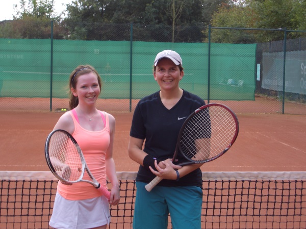 In der Damenkonkurrenz gab es nach zwei hart umkämpften Sätzen ebenfalls eine kleine Überraschung. Dort setzte sich Pauline Albers (im Bild links) gegen Iris Krümpelmann (im Bild rechts) in einem spannenden Finale nervenstark mit 7:6, 7:5 durch. Den dritten Platz errang Brigitte Borgelt denkbar knapp gegen Isabella Heising-Paul mit 7:5,4:6 und 10:8 im Matchtiebreak.