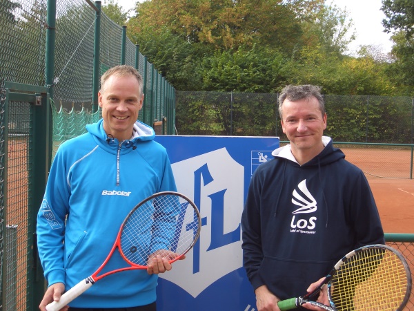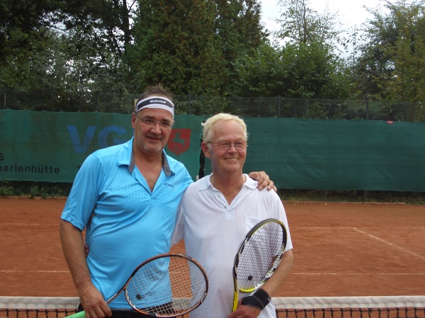 In der Konkurrenz der Herren 45 gab es eine Überraschung, dort setzte sich im Endspiel Dirk Schoppa (im Bild links) gegen den Altmeister Michael Knöbel (im Bild rechts) mit 1:6, 6:4 und im Matchtiebreak mit 10:5 durch. Den 3. Platz belegte Viktor Herdt der sich gegen Thomas Heyken durchsetzte.