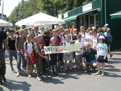Mit diesmal 26 Kindern im Alter von 8 -16 Jahren machten sich D. Schoppa und M. Knöbel sowie Frau Dybacz und Frau Albers am 11. Juni 2007 auf den Weg nach Halle, um gemeinsam die Gerry Weber Open zu besuchen. Schon die Anfahrt mit dem Haller Wilhelm brachte sehr viel Spaß. Als dann aber das Stadion betreten wurde, war die Begeisterung groß. "Das ist ja Wahnsinn", war die einhellige Meinung der Kinder über Atmosphäre, Spektakel und dem tollen Tennis, das manche zum ersten Male erlebt haben. Nachdem die ersten Autogramme von N. Kiefer ergattert wurden, eiferten viele gleich den Großen nach und ließen ihre Aufschlagsgeschwindigkeit messen. Die Showbühne wurde besucht und nicht wenige nutzten die günstigen Preise, um auf Shoppingtour zu gehen, Um 19:30 Uhr erfolgte voll gepackt die Rückfahrt und alle Beteiligten waren sich einig, auch im nächsten Jahr wieder mitzufahren.