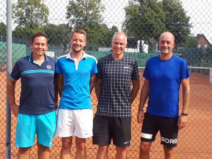 v.l. Manuel Mummert (Finalist Herren 30), Vitus Broede (Sieger Herren 30), Maxi Sperfeld (Sieger Nebenrunde Herren 30), Rene Roth (Sieger Herren 50)