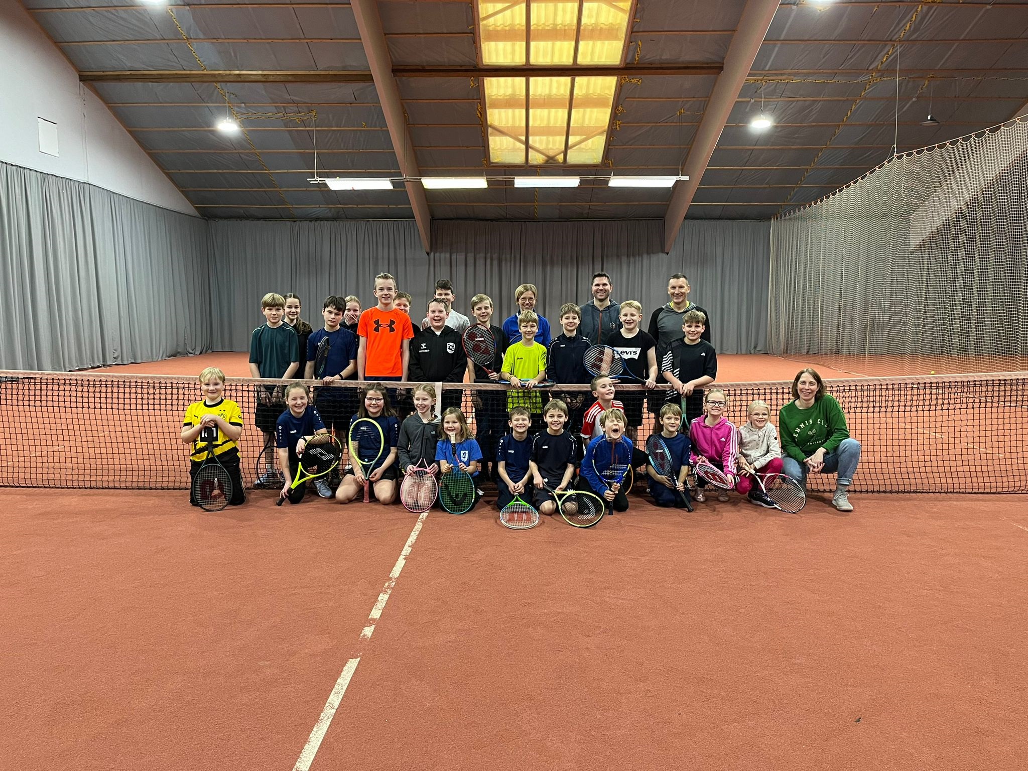 25 Kids konnten am 30.12.2023 dank eurer Spenden, die wir beim Mixedturnier 2023 einsammeln durften, zwei spaßige und lustige Stunden auf den Tennisplätzen im Vitalis verbringen.