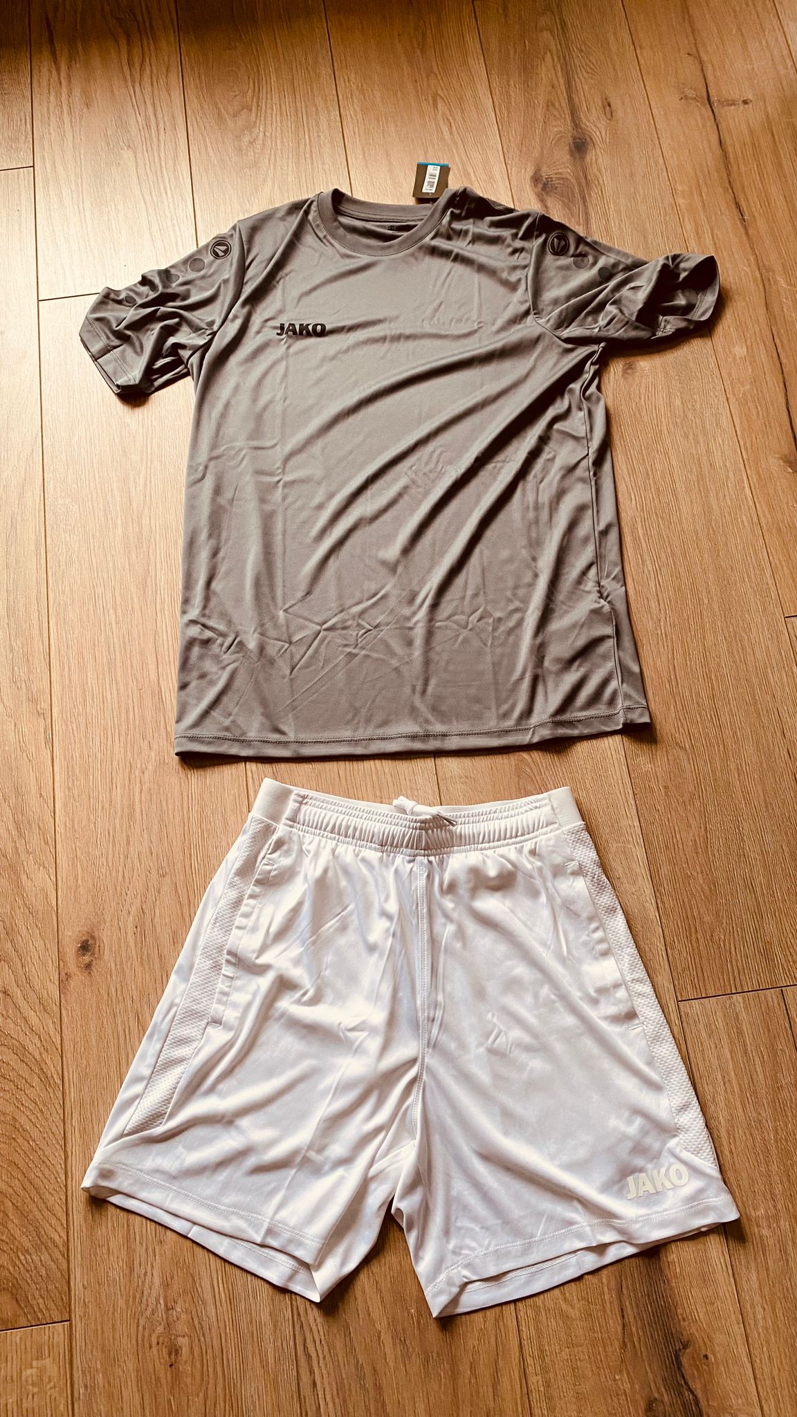 Es wird für die neue Saison Punktspiel Outfits geben, die aus einer weißen Hose (mit Taschen für Bälle) und einem hellgrauen Shirt von Jako bestehen werden.