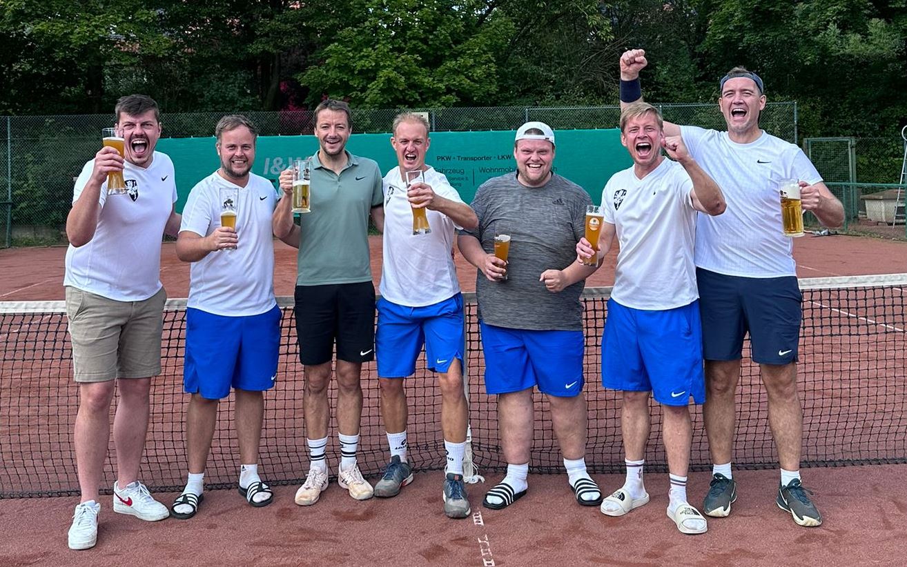 Am letzten Spieltag konnte die Herren 30 der Tennisabteilung des VfL Kloster Oesede im direkten Duell gegen den Tabellenzweiten vom TV Hasbergen den Aufstieg schaffen. Dazu benötigte die Mannschaft um Mannschaftsführer Philipp Wachhorst allerdings einen Heimsieg. Nach den Einzeln stand es allerdings nur 2-2, so dass 2 Siege im Doppel benötigt wurden. Die beiden Doppel ginge dann souverän jeweils in 2 Sätzen nach Kloster Oesede, so dass zu einer rauschenden Partynacht durchgestartet werden konnte.