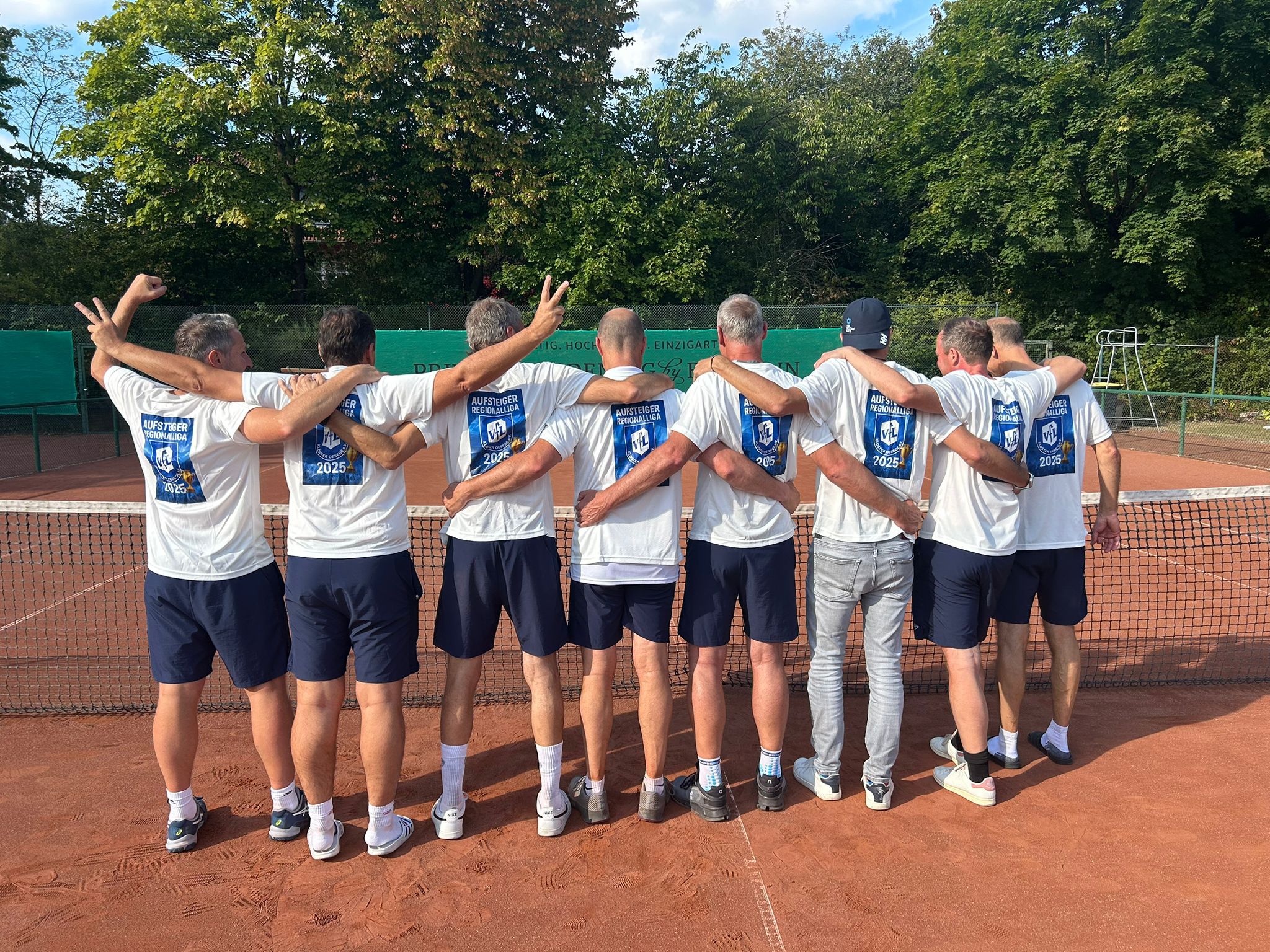 Direkt nach dem Matchball zum 5-0 streiften die Spieler ihre Aufstiegs-Shirts über und genossen den weiteren Tag. Obwohl es doch um so viel ging an diesem Tag, waren es alles sehr faire Spiele und es wurde auch noch ein gemeinsames Foto gemacht.